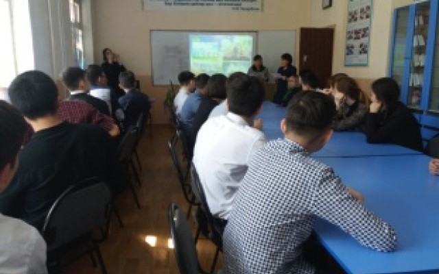 Аталмыш тәрбие сағатында студенттер назарына эко-челлендж жобасы туралы мағлұматтар айтылып,слайд, шағын видео көрсетілді. Қоршаған ортаны қорғау бойынша қойылған сұрақтарға топ студенттері қызығушылықпен жауап берді. Сонымен қатар, шара соңында кітапхана қызметкері «Экология тазалығы – халық байлығы» атты кітап көрмесіне шолу жасап шықты.