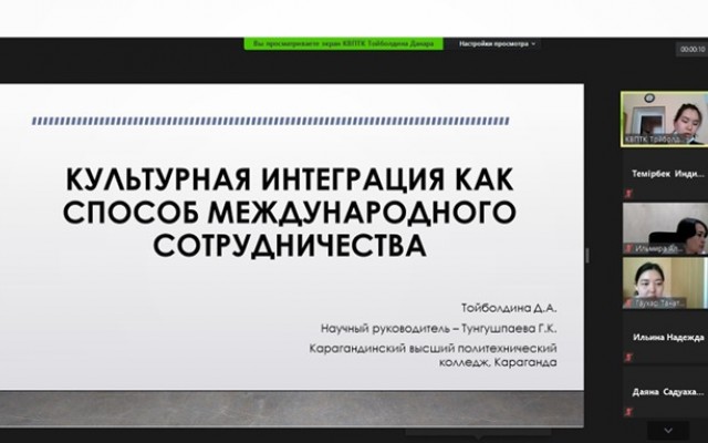 - 9-2-УА-19 тобының студенті Тойболдина Данара "Мәдени интеграция халықаралық ынтымақтастық тәсілі" атты баяндамасымен (ғылыми жетекшісі Тунгушпаева Г.К.) 3 орын үшін диплом алды;