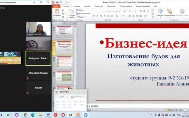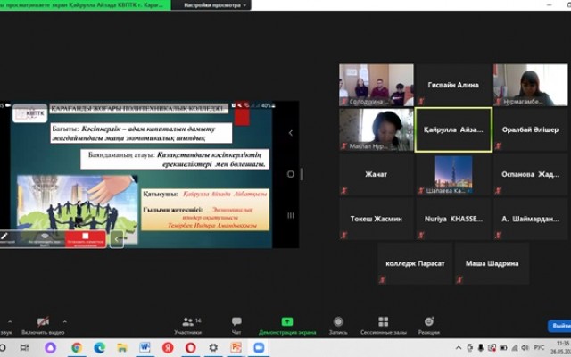 - 9-2-УA-19 тобының студенті Гисвайн Алина «Аймақтардағы шағын кәсіпкерліктің экономикалық сипаттамасы» баяндамасымен (жетекшісі Айтман Е.Е.), 9-1-УA-19 тобының студенті Қайрұлла Айзада «Қазақстандық кәсіпкерлердің ерекшеліктері мен болашағы» баяндамасымен (ғылыми жетекшісі Темірбек И.А.) сертификаттар алды.